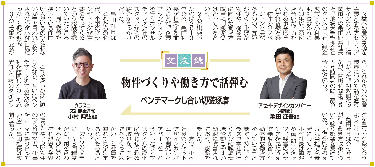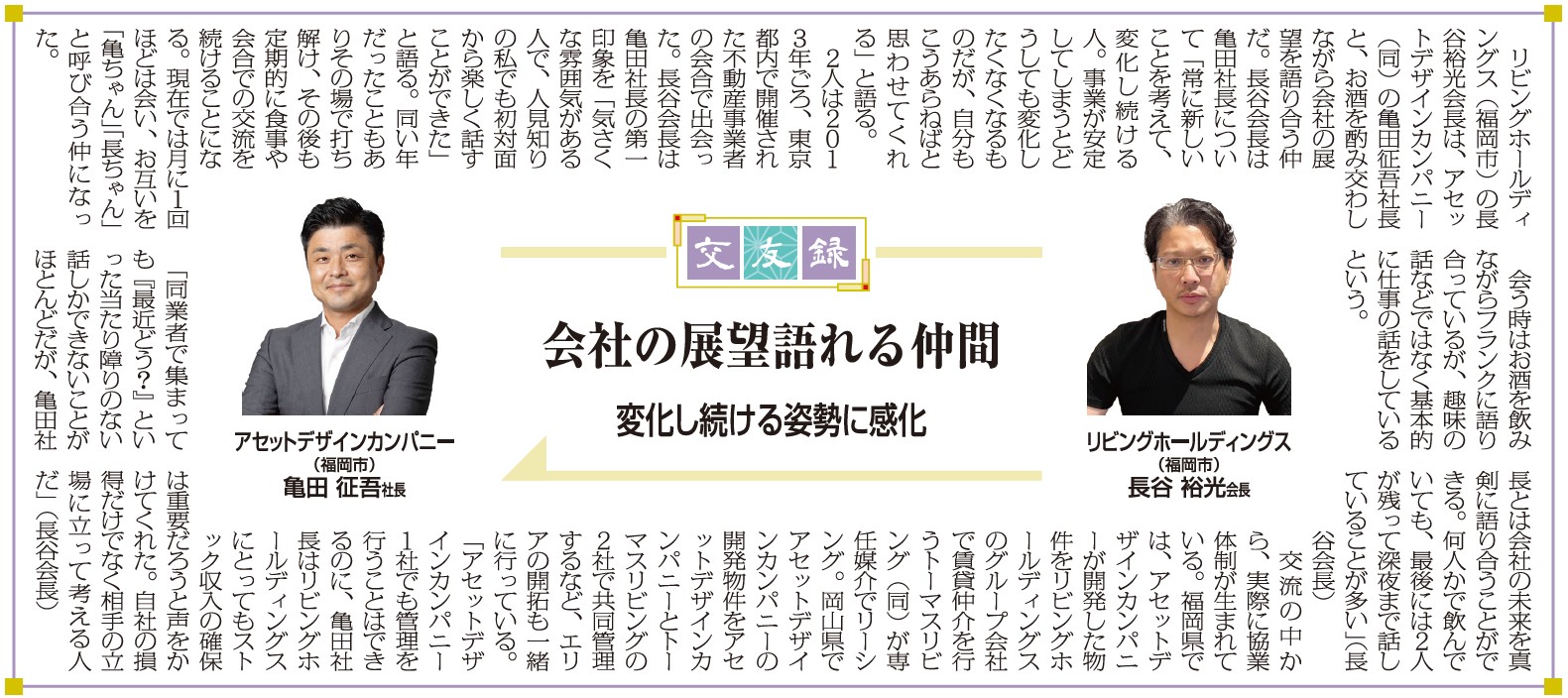 全国賃貸住宅新聞・交友録のコーナーに掲載させていただきました。